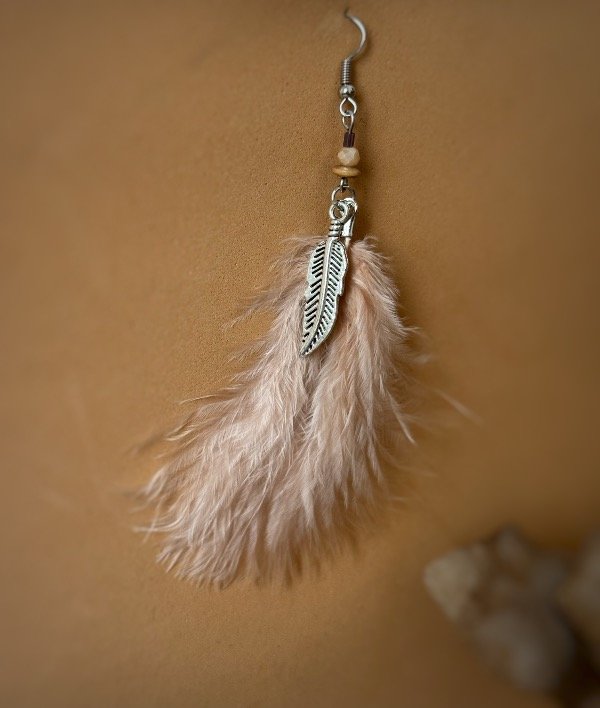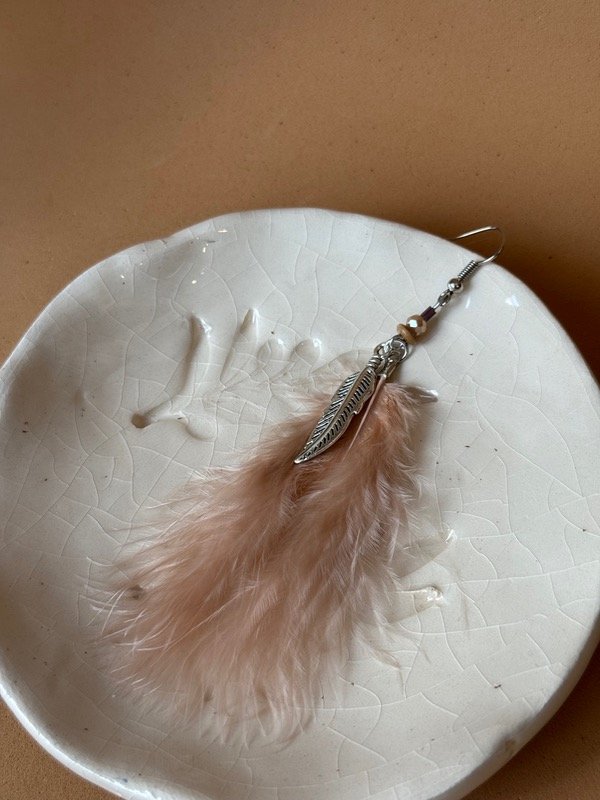 Aros realizados de manera artesanal con pluma rosa y dije pluma plateada o rosa vos elegís al momento de agregar al carrito cuál de las dos opciones queres!