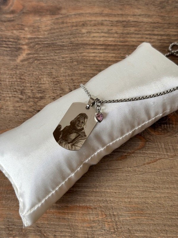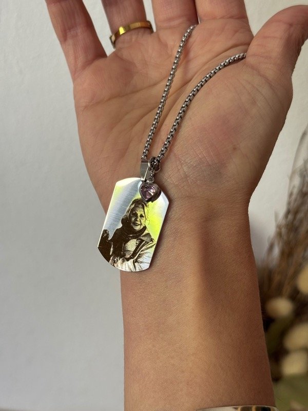 • Dije de Acero quirúrgico militar con grabado láser de Foto + Cristal + cadena de acero quirúrgico de REGALO‼️
