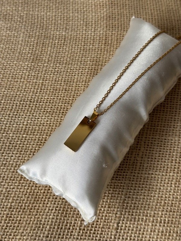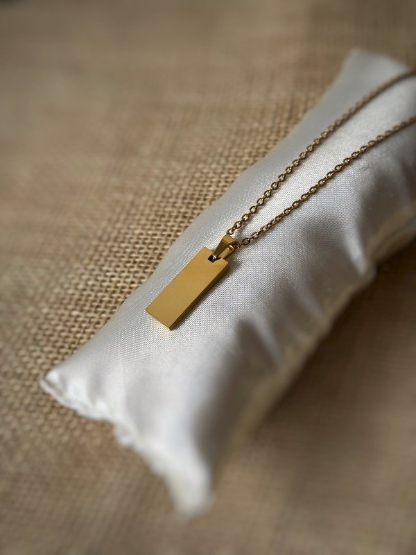 Dije barra de Acero dorado con grabado a tu gusto + cadena haciendo juego de REGALO‼️