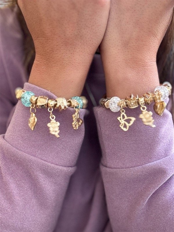 Pulseras estilo Pandoras de Acero y dijes en material acrílico. No mojar‼️